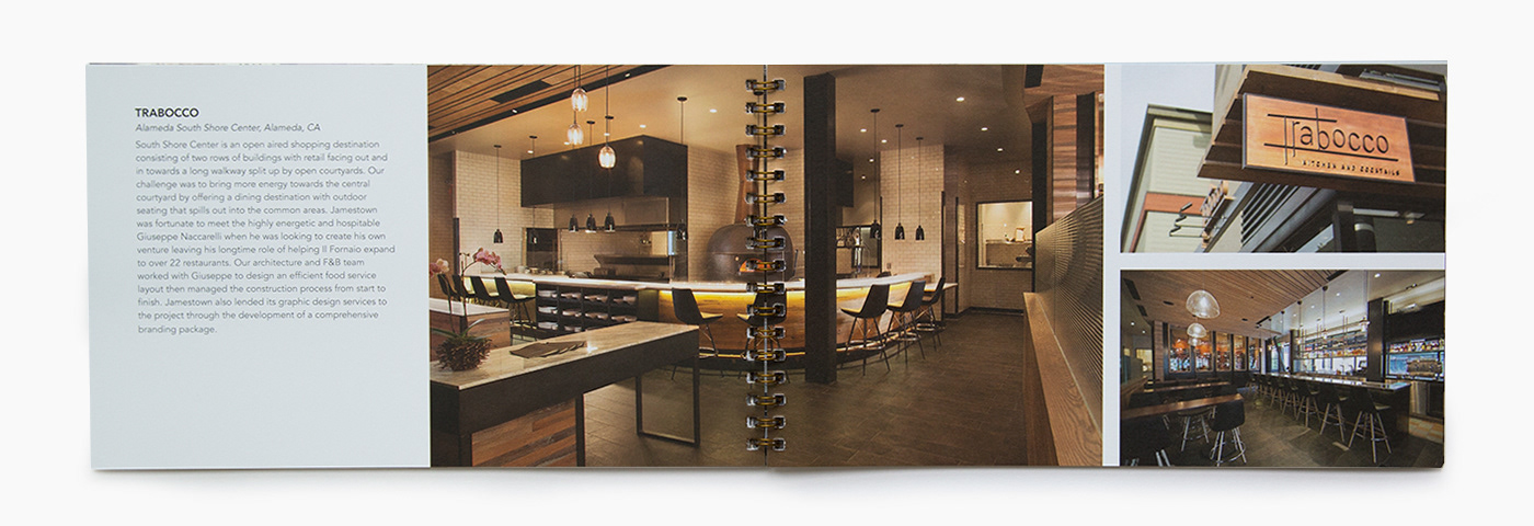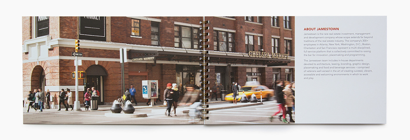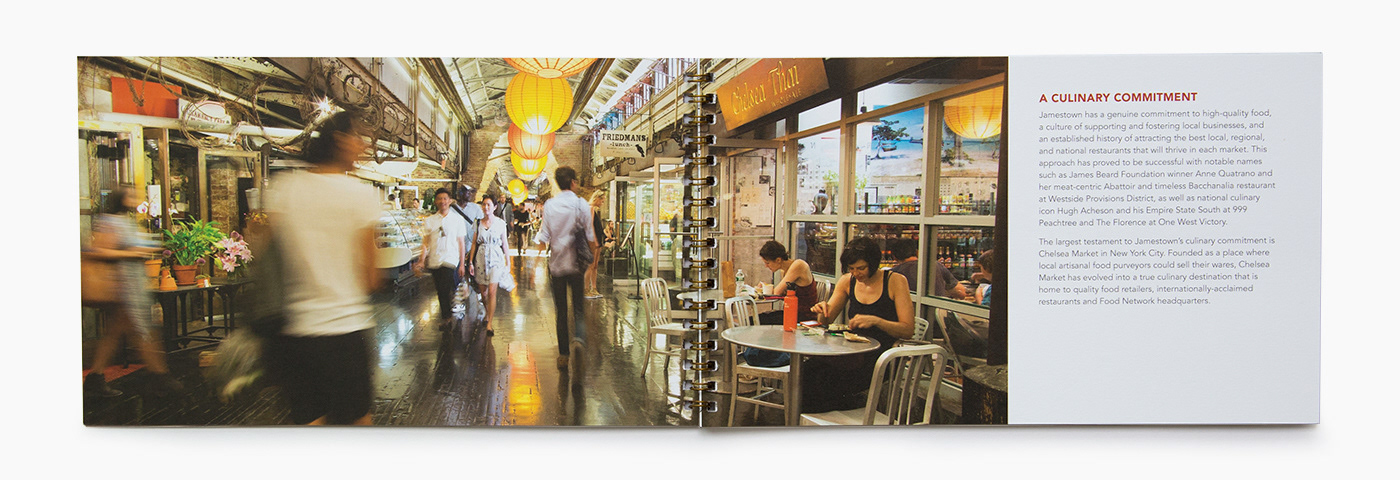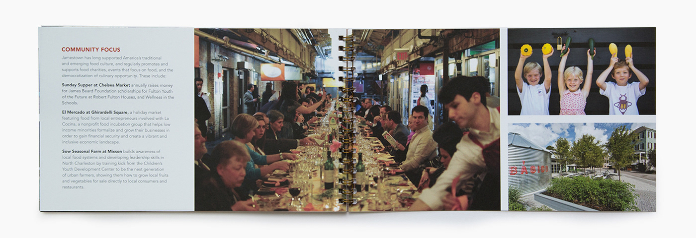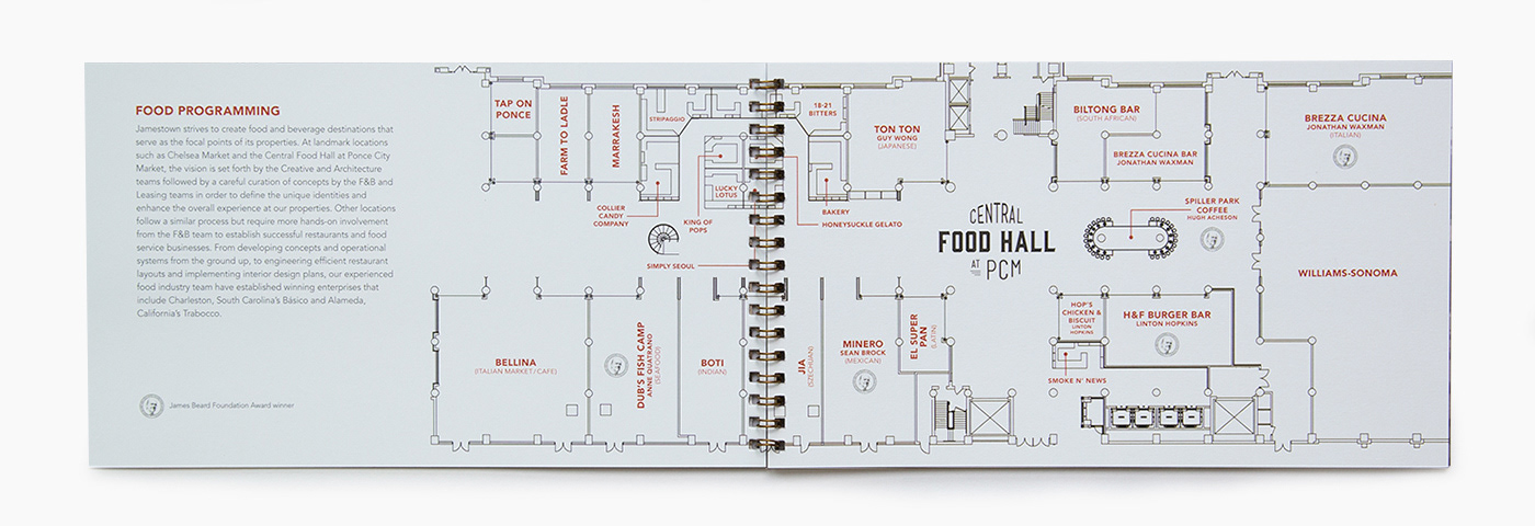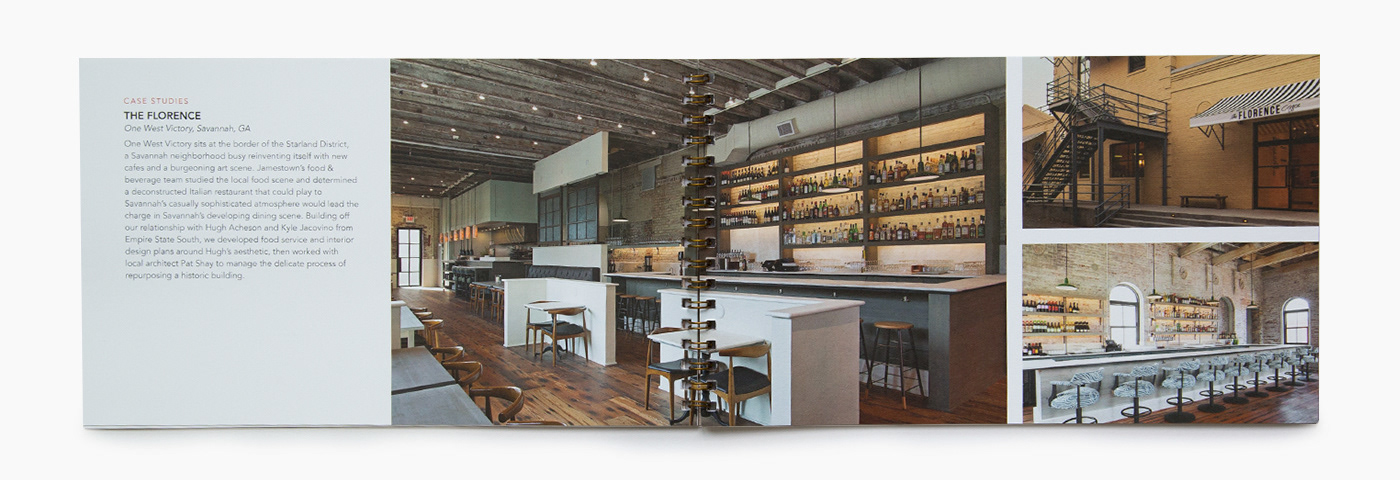 Designed a brochure to promote Jamestown’s in-house Food & Beverage team, highlighting their culinary partnerships within this real estate investment, management, and development company.