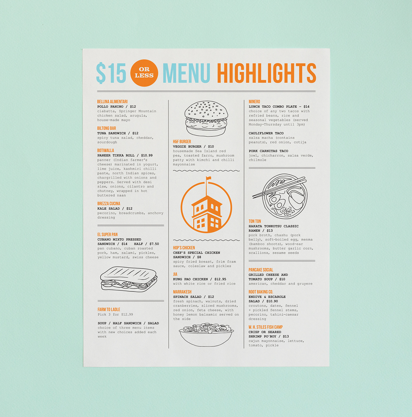 Designed a promotional menu highlighting $15-and-under food options from a variety of restaurants at Ponce City Market, Atlanta’s iconic food hall.