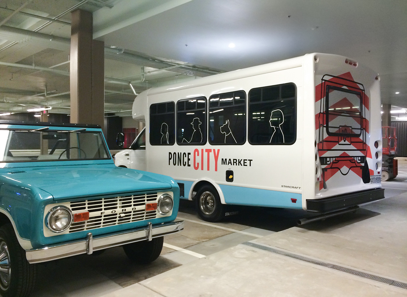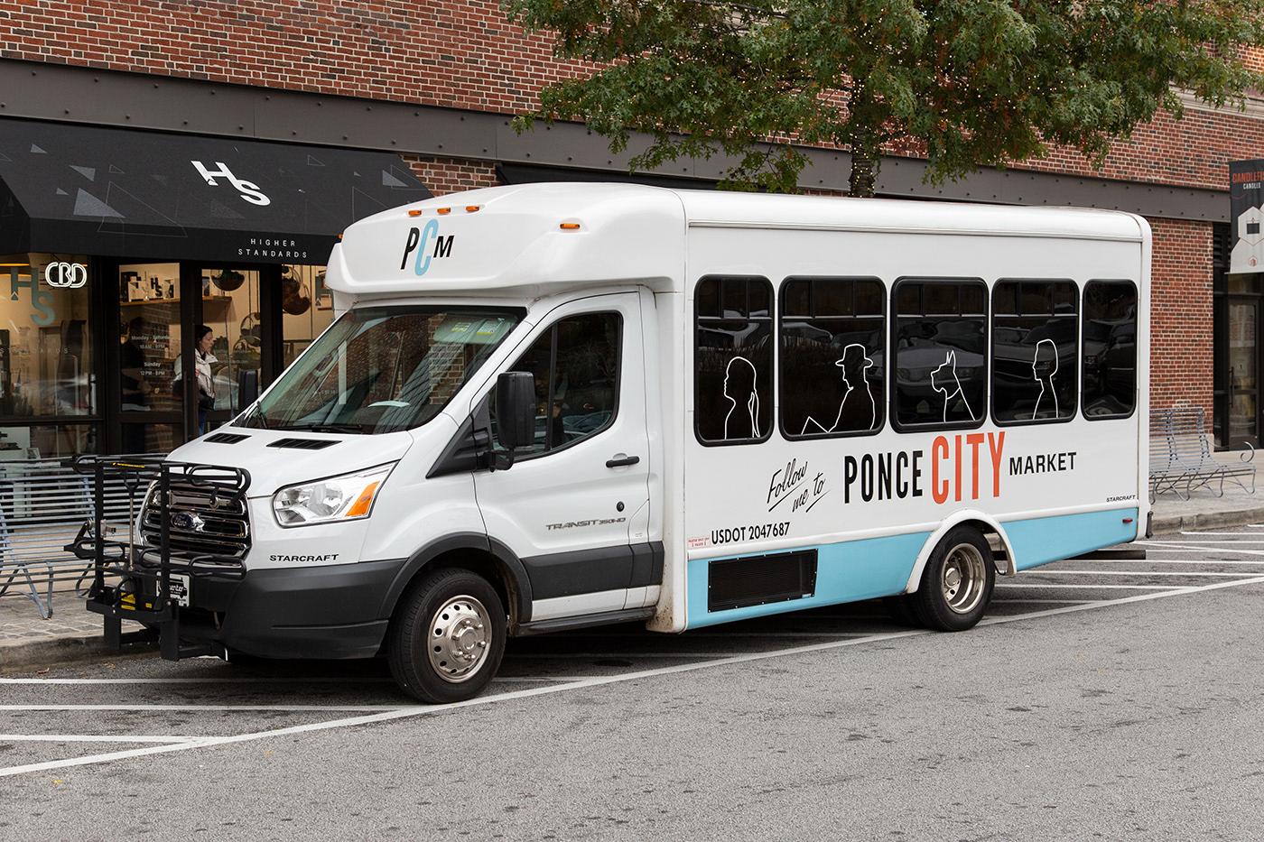 Designed a shuttle bus for Ponce City Market, a mixed-use development in Atlanta, providing convenient transportation for tenants and residents between the site and the North Avenue subway station. Creative direction: George Krauth.