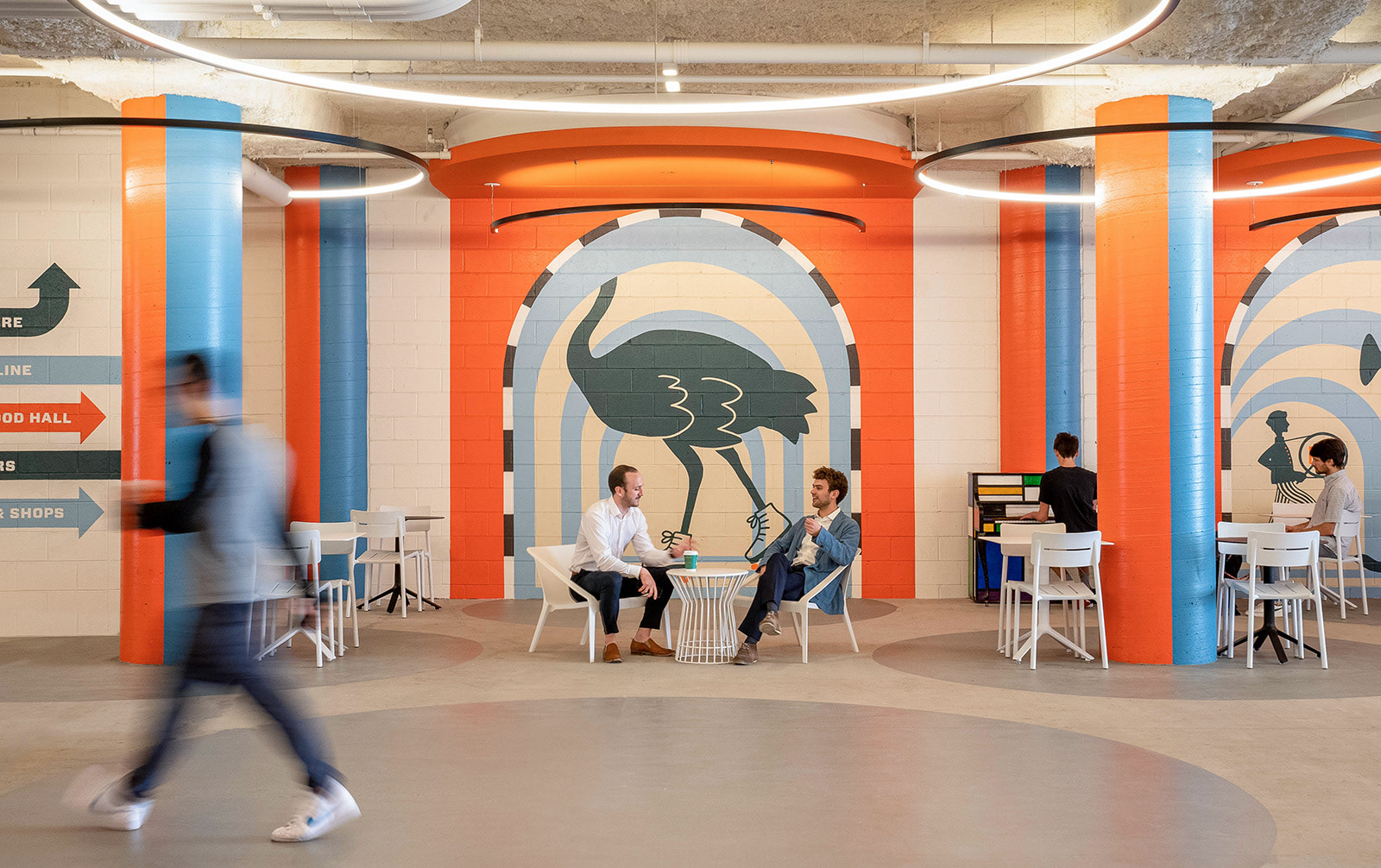 This transitional space connects the Atlanta BeltLine to Ponce City Market’s Market Hall. I created custom illustrations to enliven the corridor and introduce a sense of playfulness to the experience.Photography courtesy of Jamestown.