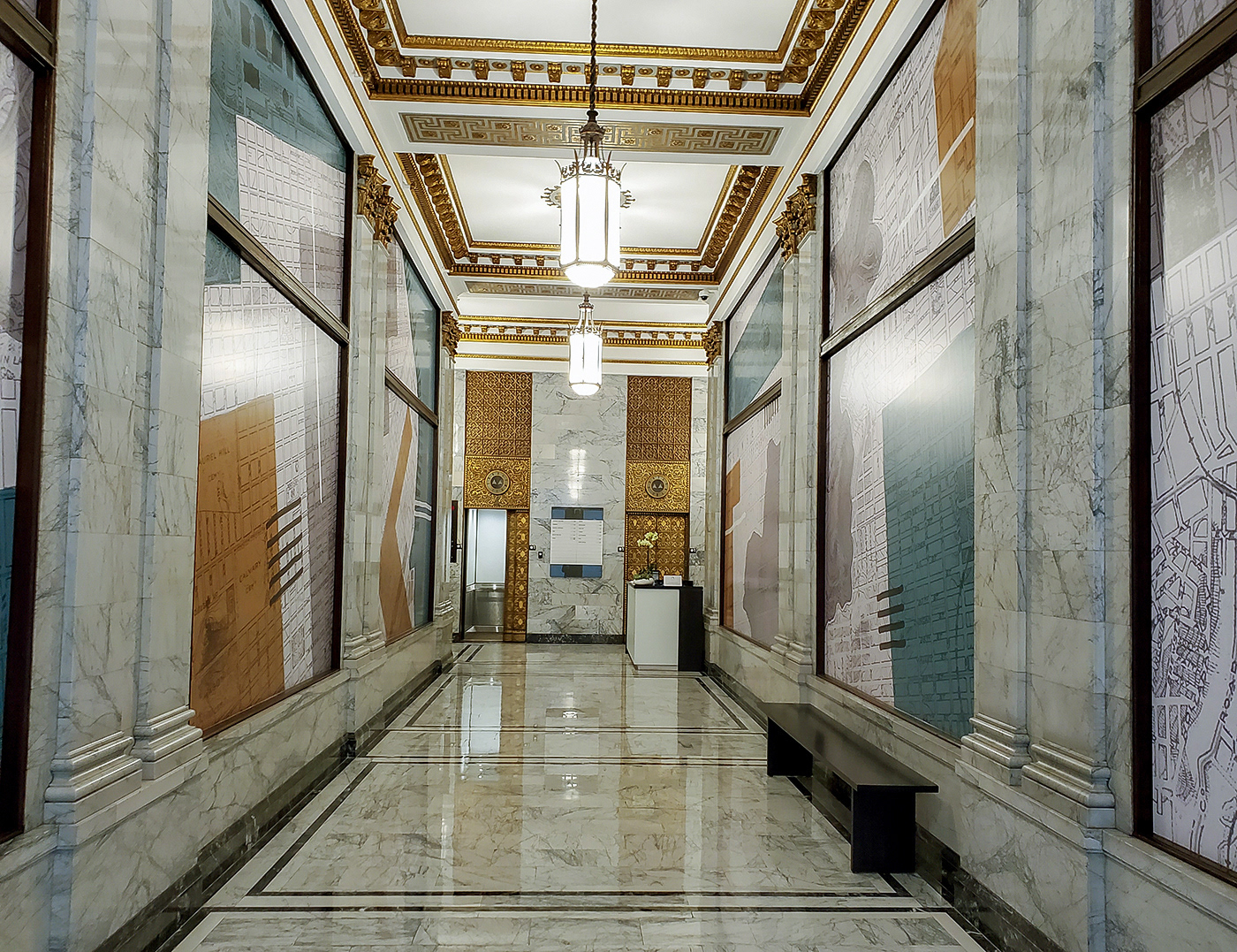 Created dynamic graphic designs to introduce color and movement to the lobby of Rialto on New Montgomery, a historic office building in San Francisco, balancing contemporary elements with the building’s heritage.