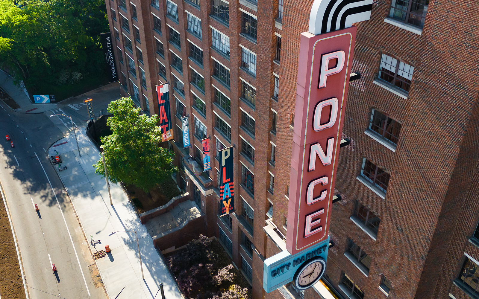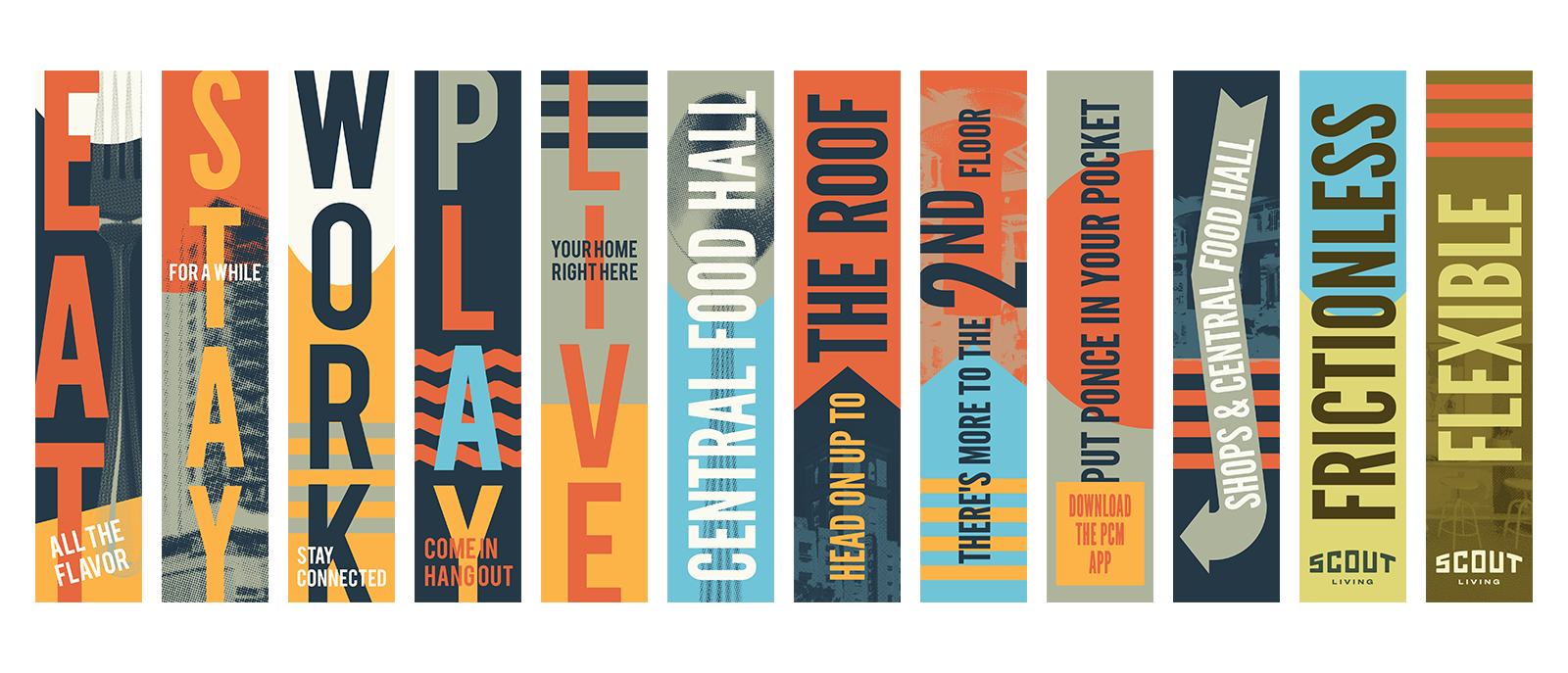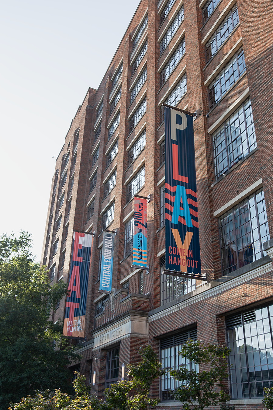 As part of a brand refresh for Ponce City Market in Atlanta, I was tasked with designing a series of large-scale building banners. The goal was to reflect the updated visual identity while maintaining the character of this historic building.