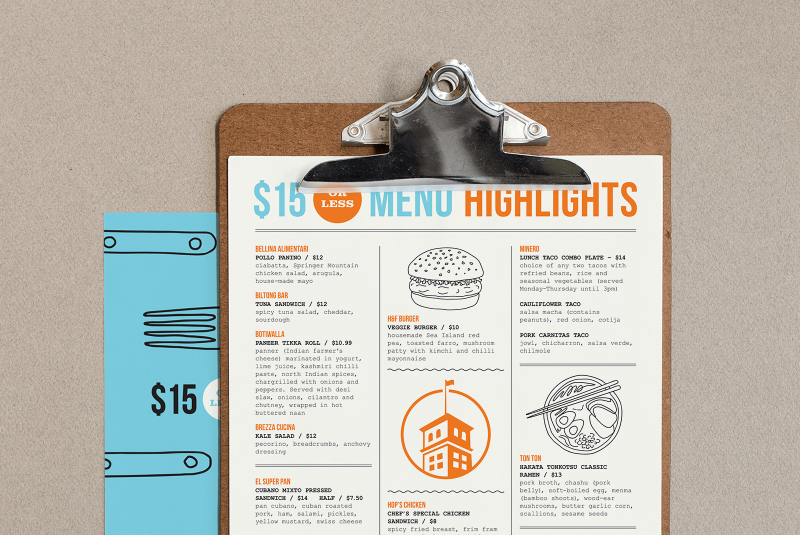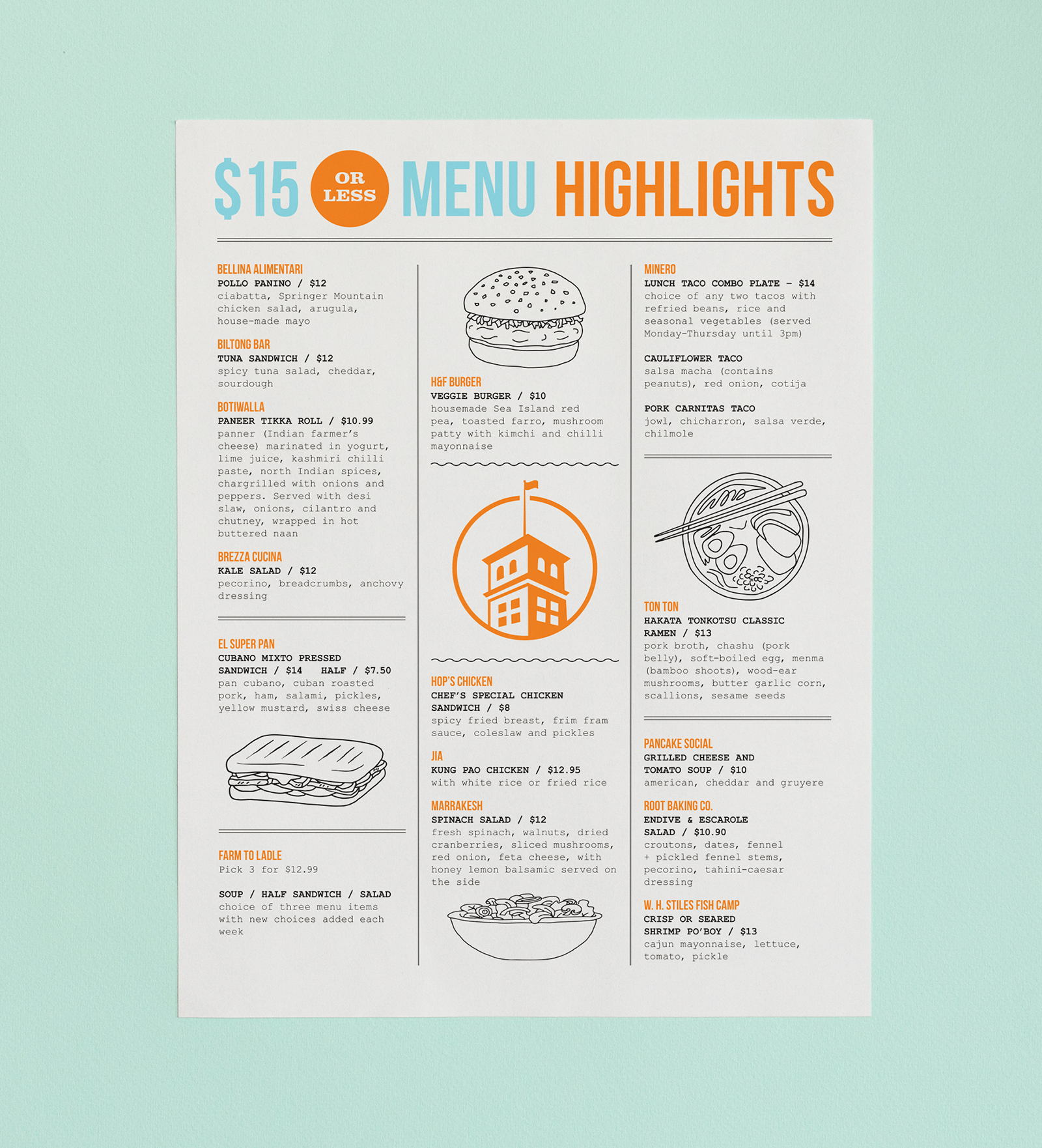 Designed a promotional menu highlighting $15-and-under food options from a variety of restaurants at Ponce City Market, Atlanta’s iconic food hall.