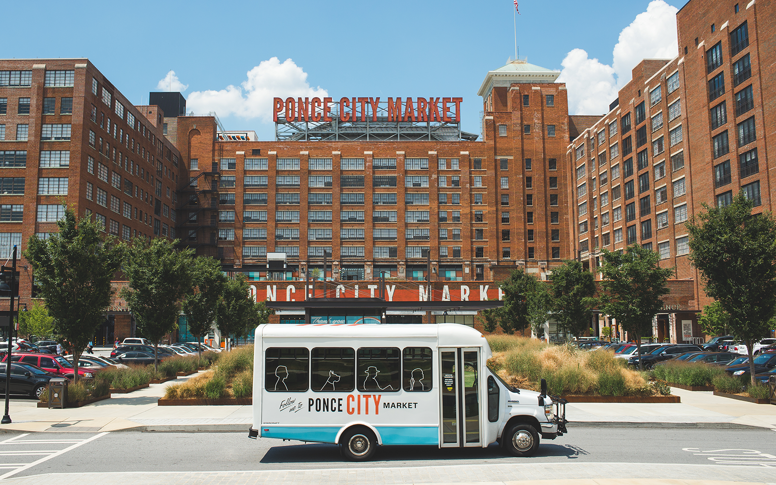 Designed branded shuttle buses for Industry City in Brooklyn and Ponce City Market in Atlanta, creating vibrant, site-specific graphics that reflect each location’s character. The Industry City design incorporated original artwork by local artist Rachel Hudak, while the Ponce City Market project focused on clear, functional design for tenant and visitor transportation. Creative direction for Ponce City Market: George Krauth.